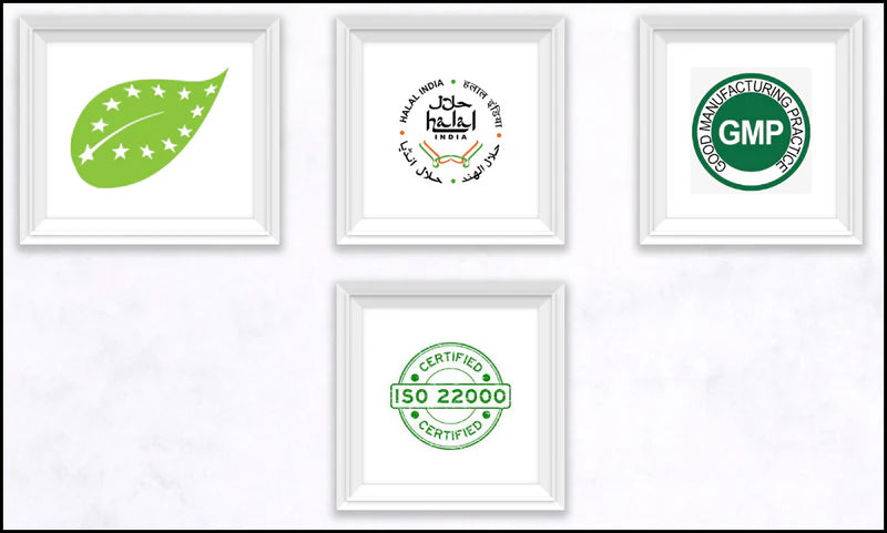 Certified by Halal India, GMP, ISO 22000, and EU Organic standards, every product you receive is one you can trust.